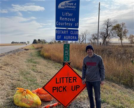 The Aurora Rotary Club is part of the Nebraska Adopt-a-Highway Program. We had a group of Rotarians who cleaned up our 2-mile stretch on highway 34 just east of town.