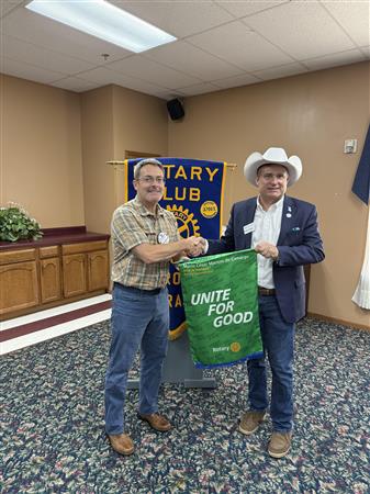 Robert Rapp, Rotary District Governor, shared a great message at our meeting and presented our club with the Unite for Good flag which represents this years' theme.